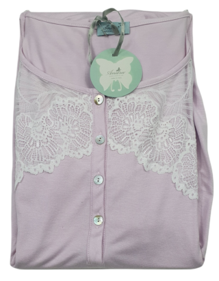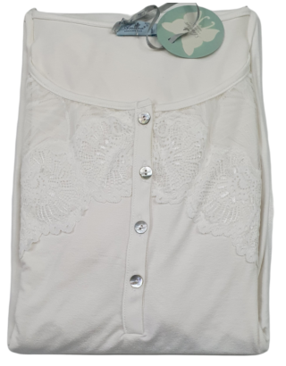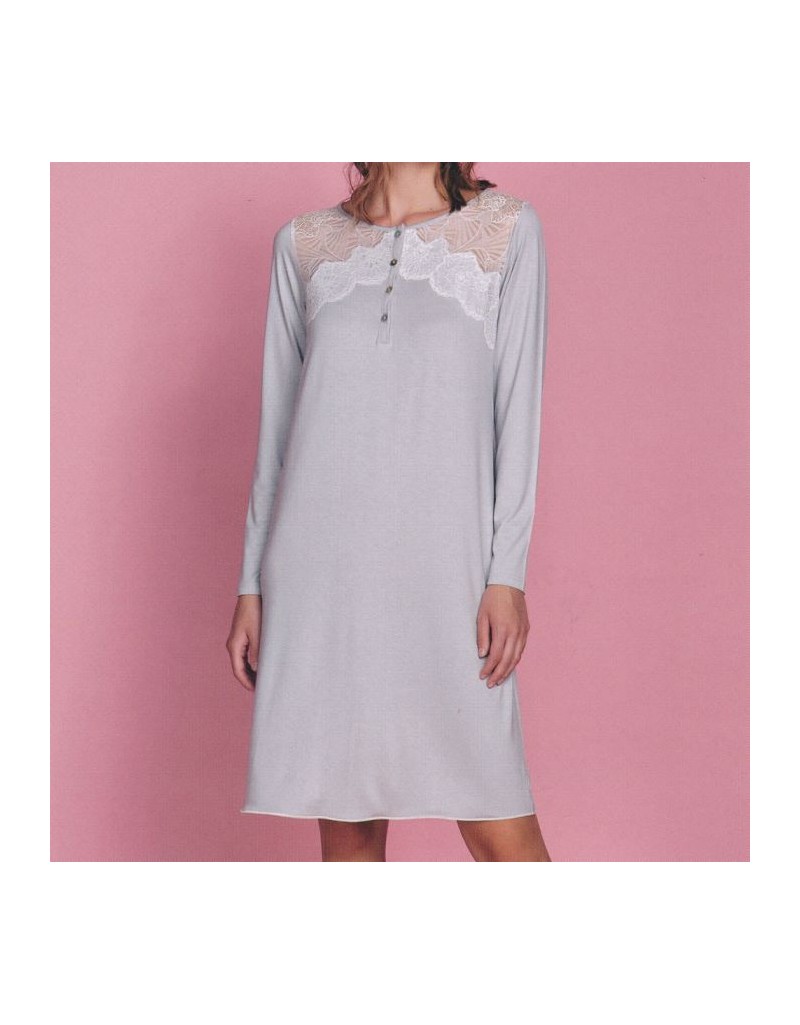 Camicia da notte a maniche lunghe con profondo scollo e pratica allacciatura con bottoni.