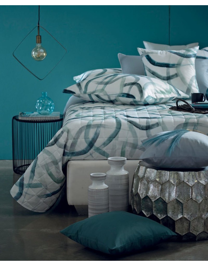 Calda trapunta matrimoniale con disegno stampato all-over.