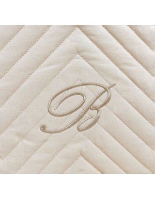 IL trapuntino primaverile è in tinta unita in percalle di cotone con particolare trapuntatura a spina di pesce 🐟e logo B ricamato tono su tono. #Blumarine