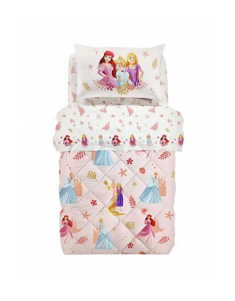 Il motivo raffinato con le protagoniste delle fiabe più amate, trasforma il letto in un autentico regno magico, accendendo la fantasia e i sogni più dolci.