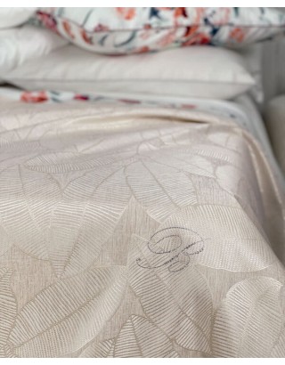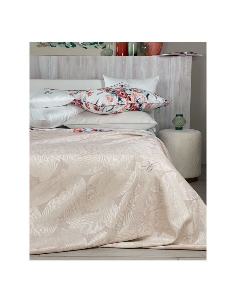 Copriletto matrimoniale liscio in jacquard con logo Blumarine in cristalli e angoli stondati in caduta.