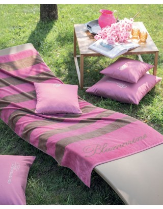 Telo mare in velour tinto in filo con logo Blumarine in jacquard.